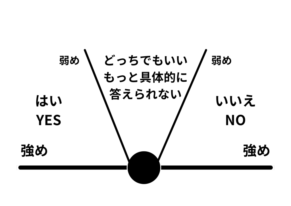 中央または斜め:どちらでもいい、もっと具体的に聞いてほしい、答えられない、というサイン